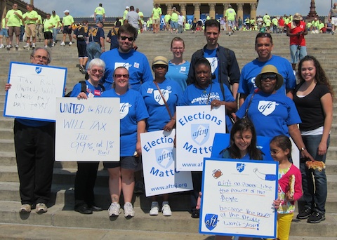 AFTNJ at Workers Stand for America. On the steps of the Philadelphia Museum of Art.