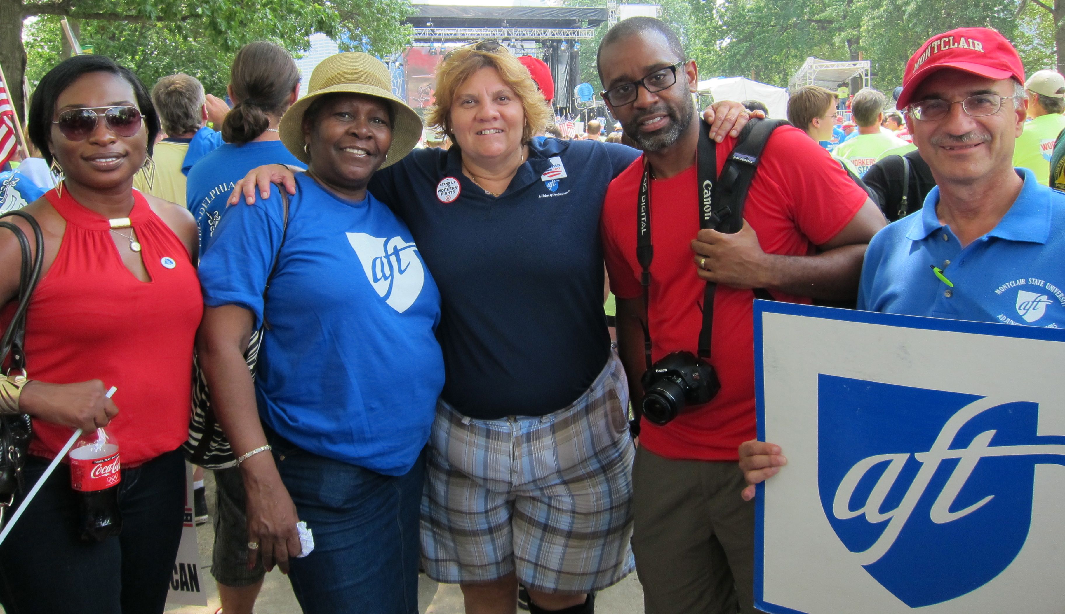 Edith Brown (AFT shirt), Joyce Sagi from URA-AFT, George Jackson from Philadelphia Federation of Teachers, Montclair Adjunct Bob Russo (AFTNJ Higher Education VP)