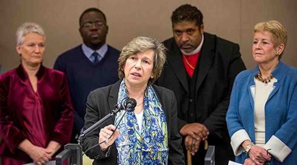 Weingarten speaks at a press conference calling on President-elect Donald Trump to denounce the hate-fueled acts occurring in the wake of his election. Photo by Michael C. Campbell.