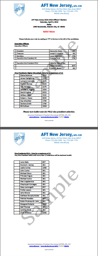 AFTNJ 2016 sample ballot