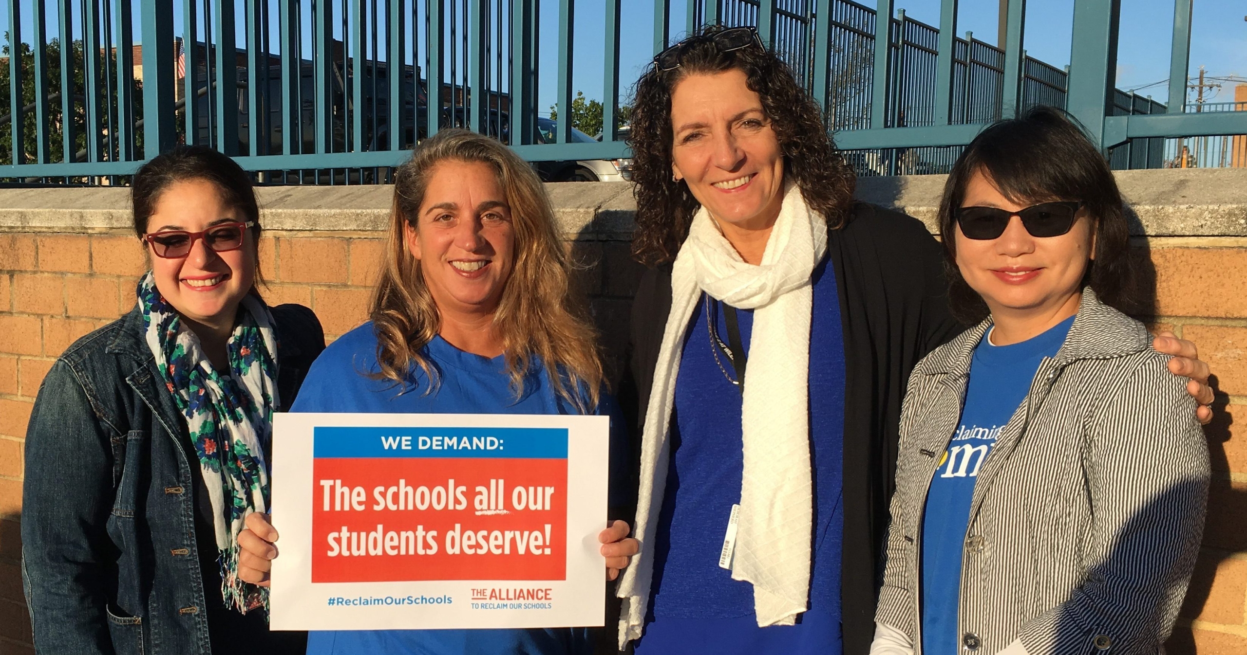Wilentz Elementary School teachers Engy Aly, Maria Hornlein, Debby Shepherd and Librarian Meina Montalbano participated in Thursday’s “Walk-In” to Reclaim Our Schools to call for funding for public education.