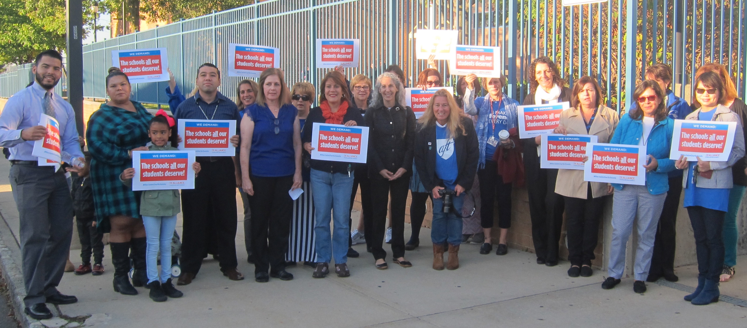 Parents, educators and community leaders met at Wilentz Elementary School on Thursday to call for full funding for New Jersey schools in accordance with the current funding formula for education and launch a petition against Gov. Chris Christie’s proposed cuts at www.paf-aft.org.