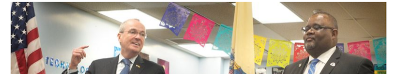 Asbury Park Superintendent Dr. Lamont Repollet listens as Gov.-elect Phil Murphy announces him as Commissioner of Education